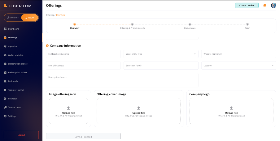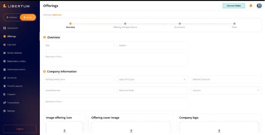 The “Overview” section page contains the following information and the issuer must enter all the below details before they move to the next steps -