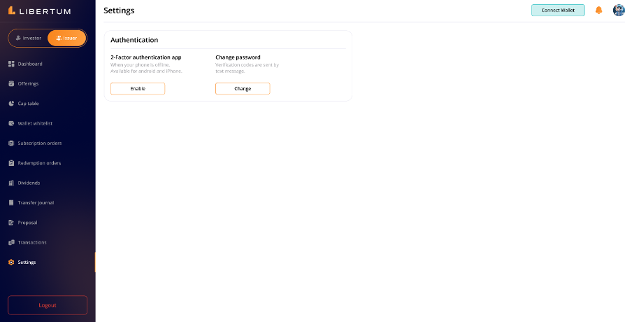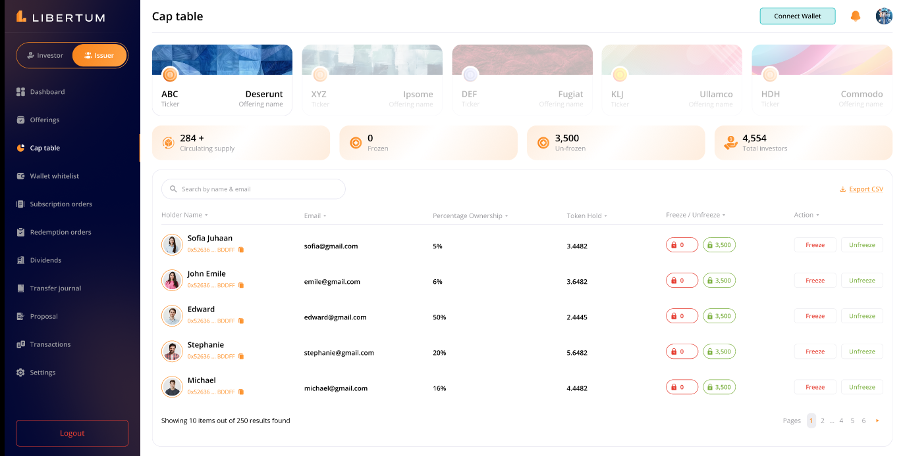 The “Dividends” section lets investors ensure secure and accurate transfers between investors’ wallets.