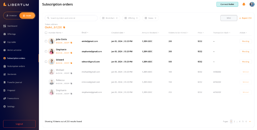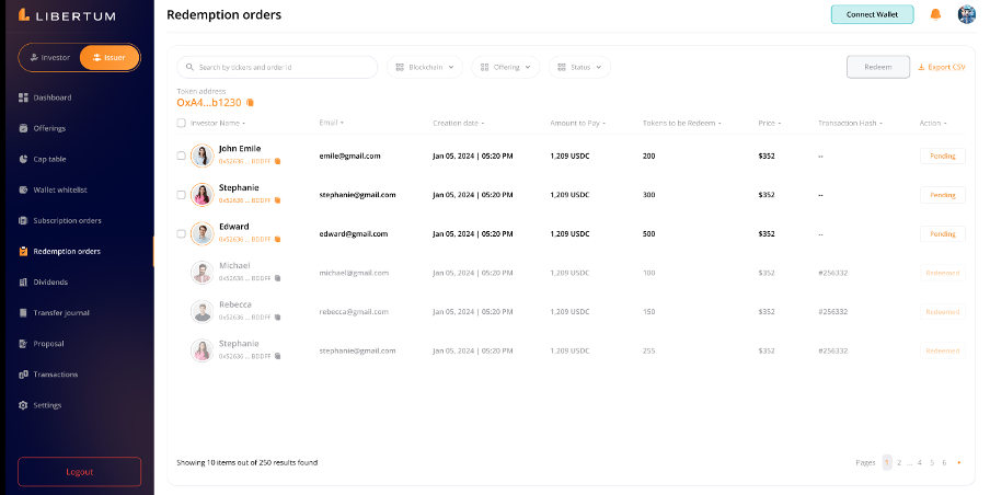 FR:069 The issuer must click on the “Distribute” button, the funds will be transferred from the Issuer’s wallet to the selected investors’ wallet addresses.