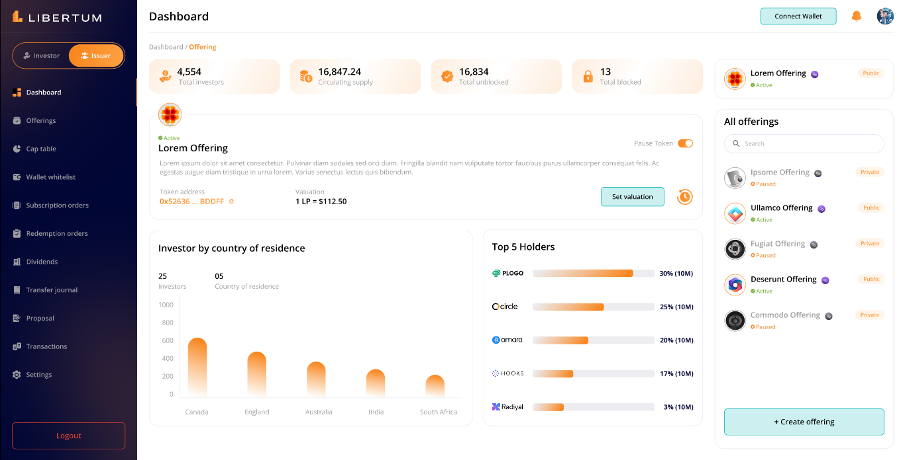 ● Top 5 Holders Bar Chart - A bar chart showing the top 5 holders of the Issuer’s tokens on the dashboard.
