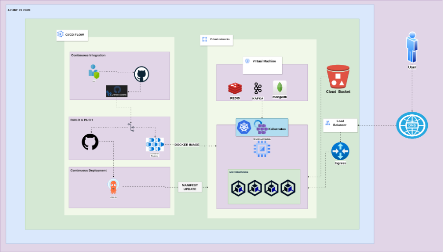 ●      Despliegue en Azure Kubernetes Service para gestión escalable. Alta disponibilidad, actualizaciones automáticas, seguridad robusta. Multi-zona para tolerancia a fallos y auto-scaling.
